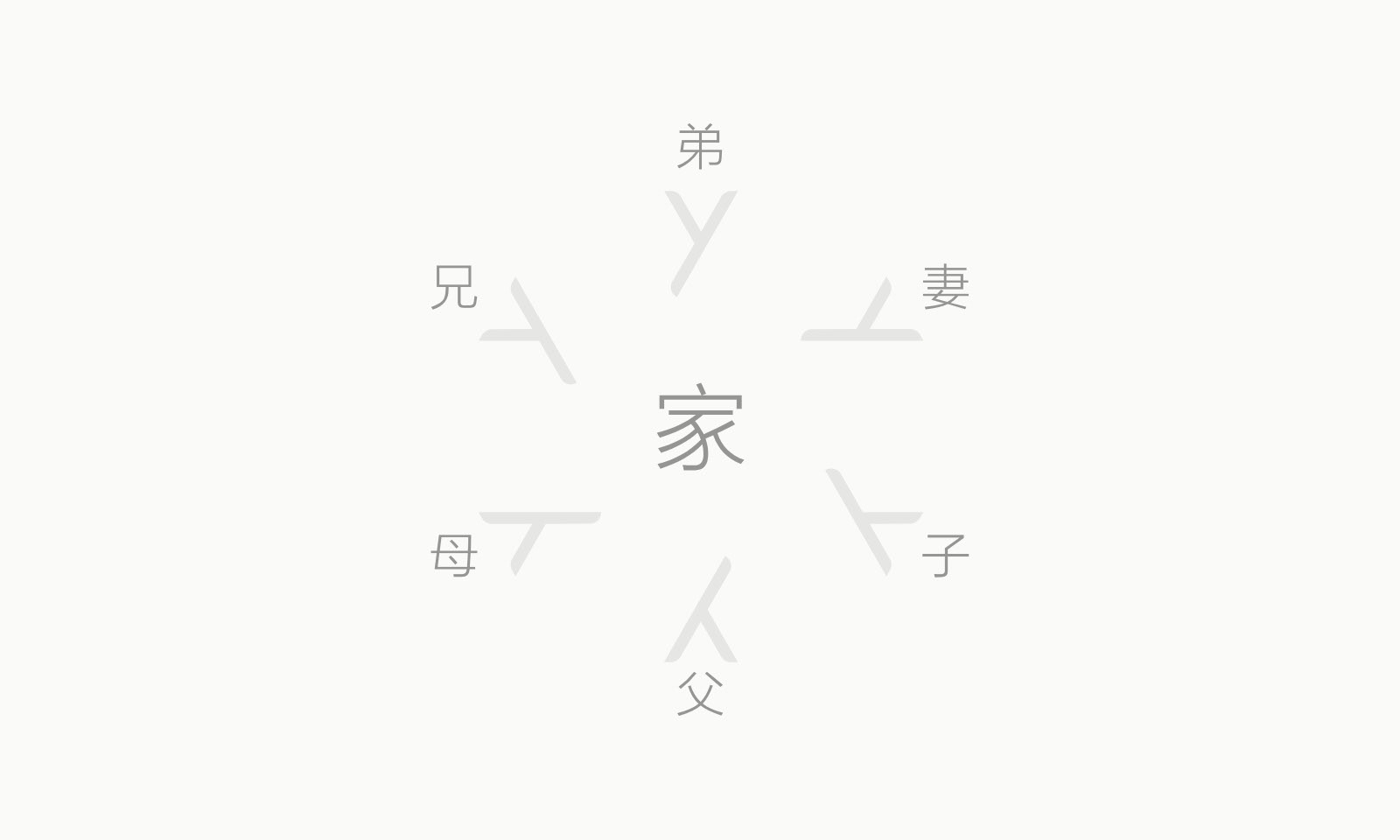 Hence, the form factor of our brand mark was clearly defined by our journey and research. The human element represented by the chinese character “Ren”, revolving around each other to form a hexagon. The six axes of the snowflake appearance is symbolic of the symbolises the 6 types of relationships in the family.