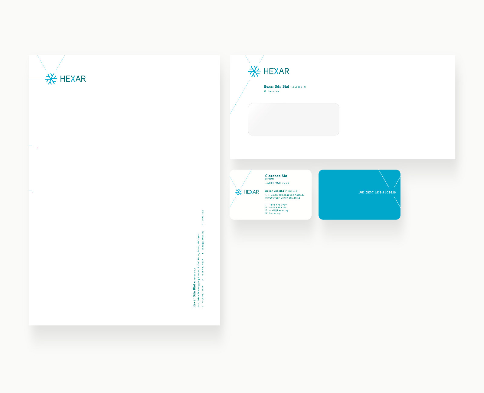 We focused on the hexagon shape of the honeycomb as our starting form. The hexagon is said to be nature’s most efficient space saving shape. As property and land development was their core business, it was a clear choice. And thus the name ‘Hexar’ was born from this inspiration.